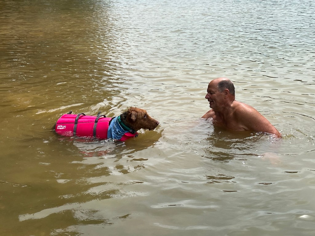 “Ready for another long swim to Fontana Dam and beyond. Starting at Tsali Campground tomorrow(9-7-2023) and hoping to finish at Calderwood Dam on Sunday(9-10-2023). I will be pulling my food and gear on a paddle board and camping along the way. You can follow me by clicking the link below. I am hoping to raise money for the TC Roberson Swimming and Diving program. Info on that later.”